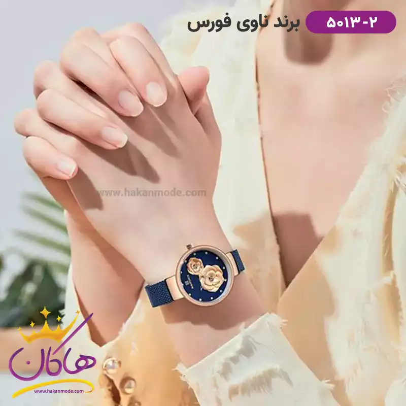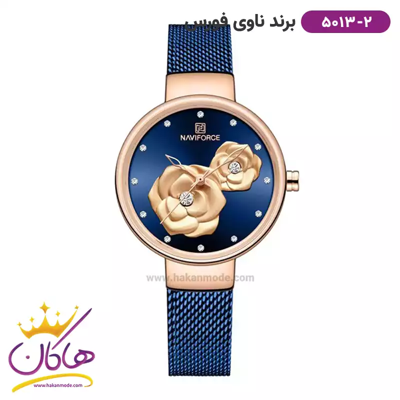 ساعت زنانه نیوی فورس فلزی سورمه ای بند حصیری 5013/2