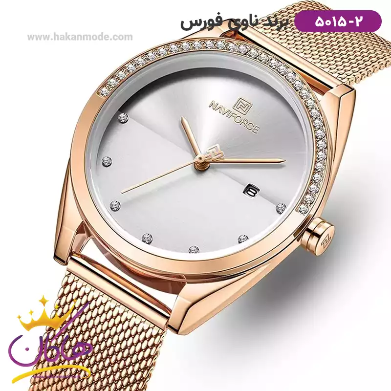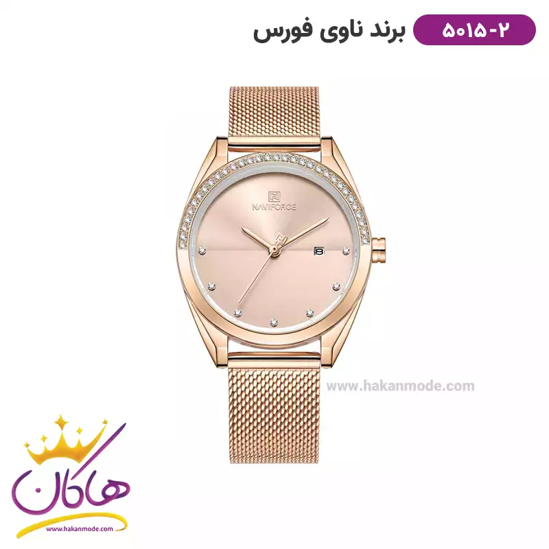 ساعت زنانه نیوی فورس تمام رزگلد بند حصیری 5015/2