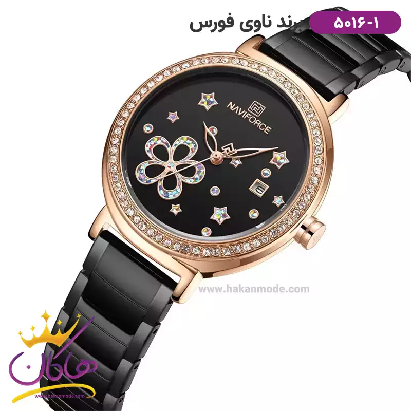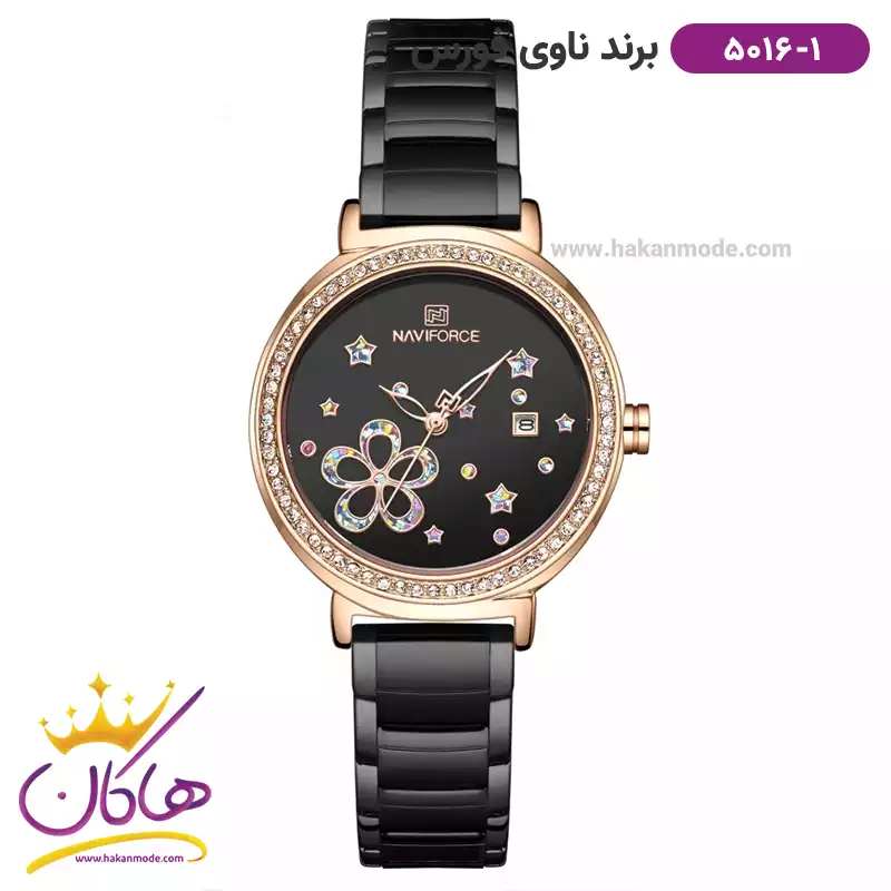 ساعت زنانه نیوی فورس مشکی قاب رزگلد صفحه گل دار 5016/1