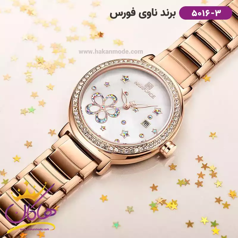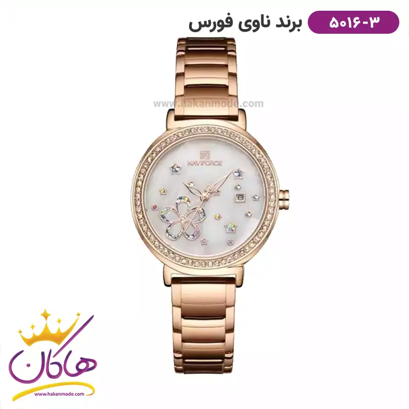 ساعت زنانه نیوی فورس رزگلد صفحه سفید گل دار 5016/3
