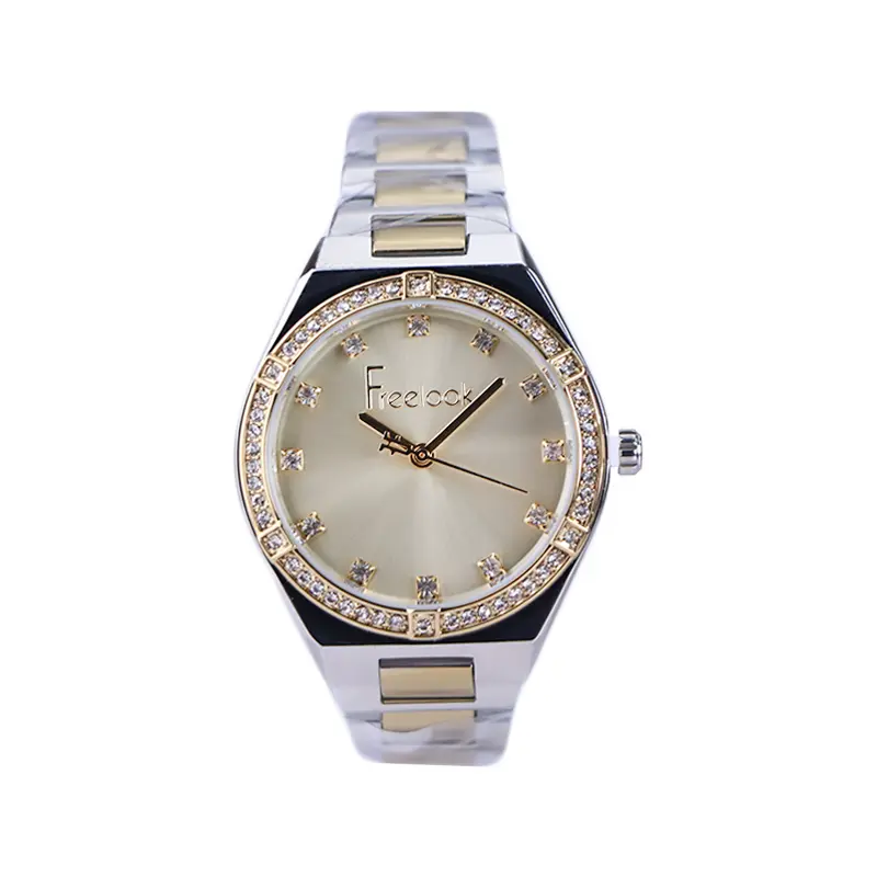 ساعت فری لوک زنانه فلزی نقره ای طلایی قاب نگین دار 10438/3