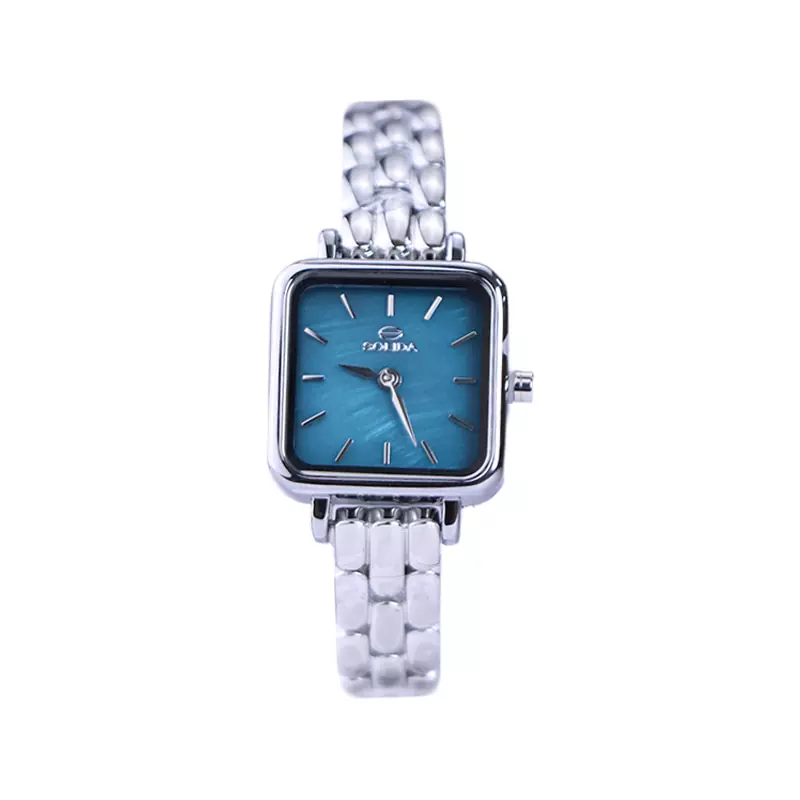 ساعت مچی سولیدا زنانه فلزی قاب مربع صفحه سبزآبی 6112/4