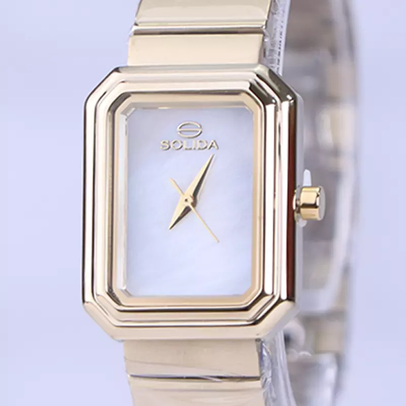 ساعت مچی سولیدا زنانه فلزی قاب مستطیل طلایی L 6126/11
