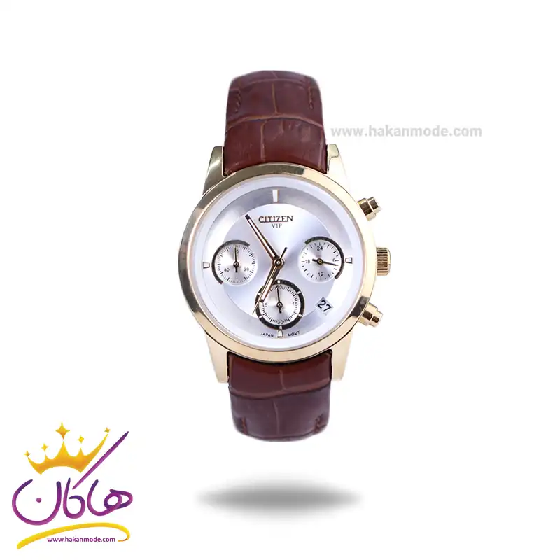ساعت مچی سیتیزن زنانه بند چرم قهوه ای قاب طلایی کرنوگراف L8111/2