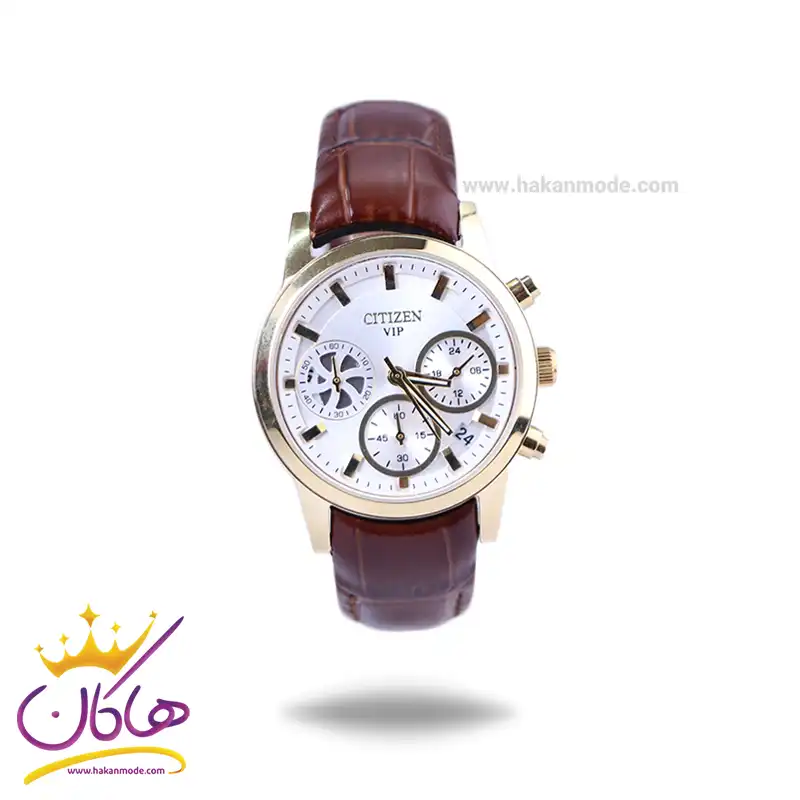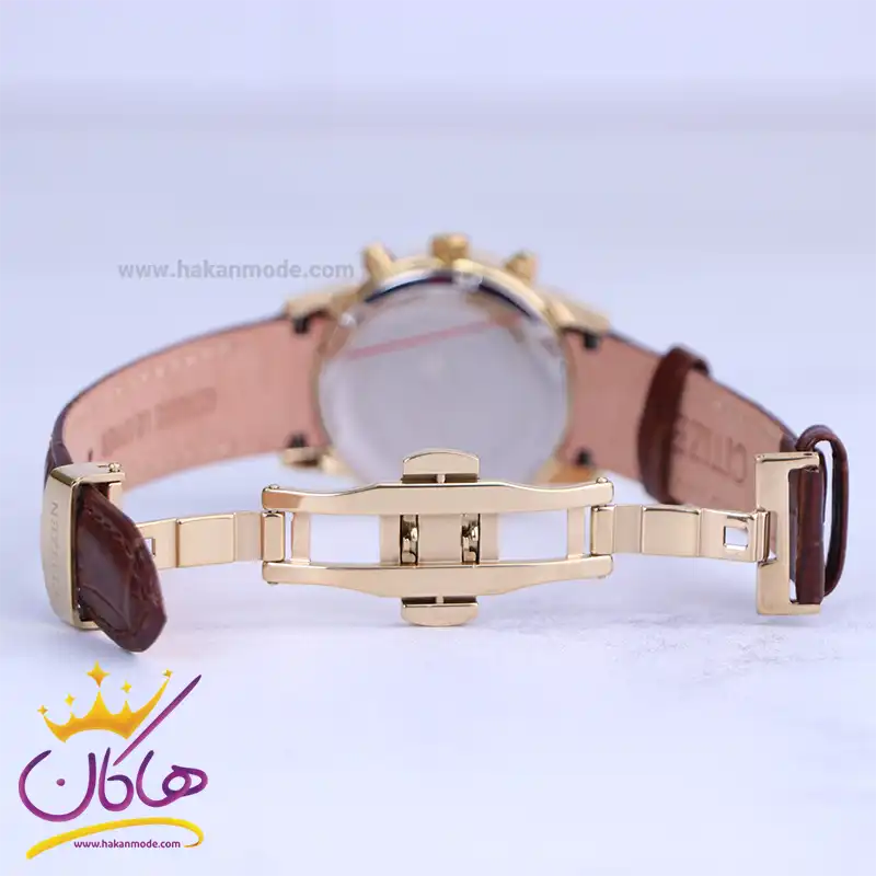 ساعت مچی سیتیزن زنانه بند چرم قهوه ای قاب طلایی کرنوگراف L9235/4