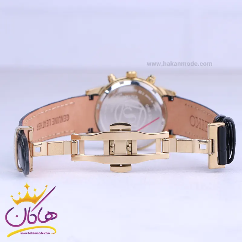 ساعت مچی سیکو زنانه بند چرم قاب طلایی کرنوگراف L9233/19