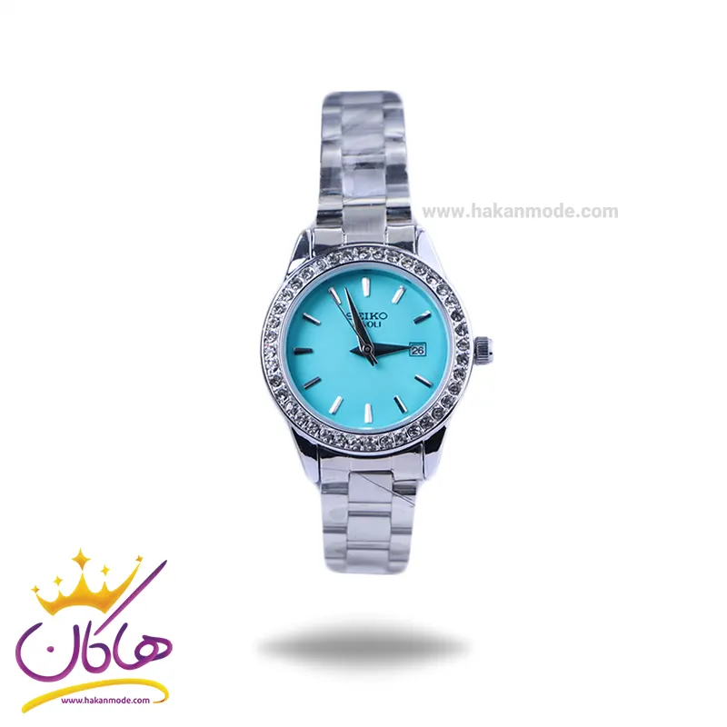 ساعت مچی سیکو زنانه فلزی صفحه سبز قاب نگینی GN 059/43