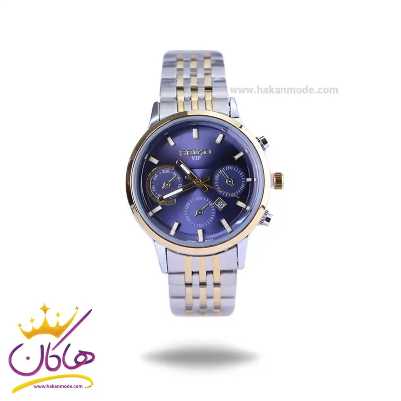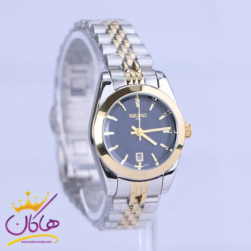 ساعت مچی سیکو زنانه فلزی نقره ای طلایی صفحه سورمه ای 4200/4