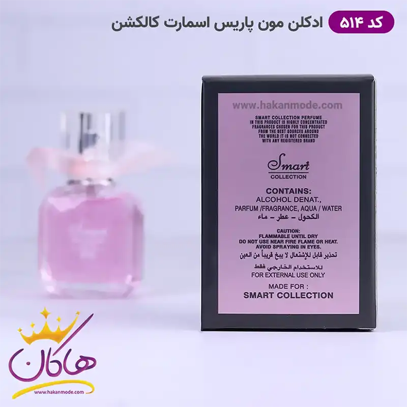 هاکان مد به عنوان واردکننده عطر و ادکلن این امکان را دارد تا انواع ادکلن زنانه و عطرهای مردانه از برندهای مختلف را مستقیما و بدون واسطه به دست مشتریان خود برساند. پس اگر فروشنده لوازم آرایشی و بهداشتی هستید و یا به شکل تخصصی به فروش عطر مشغولید برای خرید عمده ادکلن اسمارت کالکشن 25 میل با پشتیبانی هاکان مد تماس بگیرید تا از قیمت فروش عمده عطر اسمارت کالکشن مطلع شوید. در این مجموعه میتوانید عطر اسمارت زنانه کد 514 را به صورت عمده خریداری کنید و از تخفیفات ویژه خرید عمده بهرهمند شوید.