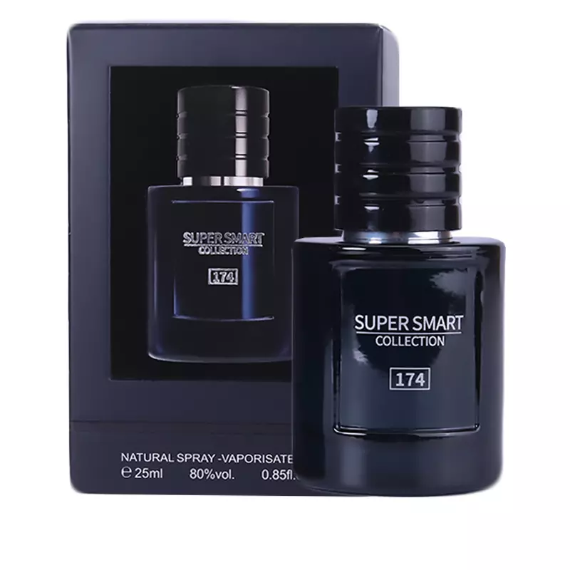 برند سوپر اسمارت کالکشن نزدیک به 500 رایحه از معروفترین عطرهای جهان را بازسازی کرده است. او تلاش کرده تا نزدیکترین رایحه به فرمولاسیون اصلی را بسازد. برند سوپر اسمارت کالکشن ادکلنهای مینیاتوری 25 میل خود را در ابعاد کوچکتری ساخته، تا هر گونه تشابه و شبههای را برطرف کند. در این مدل شما به راحتی شرکتی بودن ادکلن را تشخیص میدهید. اگر بخواهید قیمت هر دو ادکلن را مقایسه کنید، خواهید دید که قیمت ادکلن شرکتی، به نسبت کیفیت آن بسیار مناسب است. ادکلن سوپر اسمارت کد 174 مشابه ادکلن Sauvage Elixir از برند Dior است و میتواند جایگزین مناسبی برای این ادکلن مدرن باشد. ادکلن Smart Collection 174 همان حس آرامش، لطافت و جذابیت ادکلن دیور ساواج الکسیر اورجینال را دارد و به چند دلیل میتواند انتخاب خوبی برای ما باشد:
