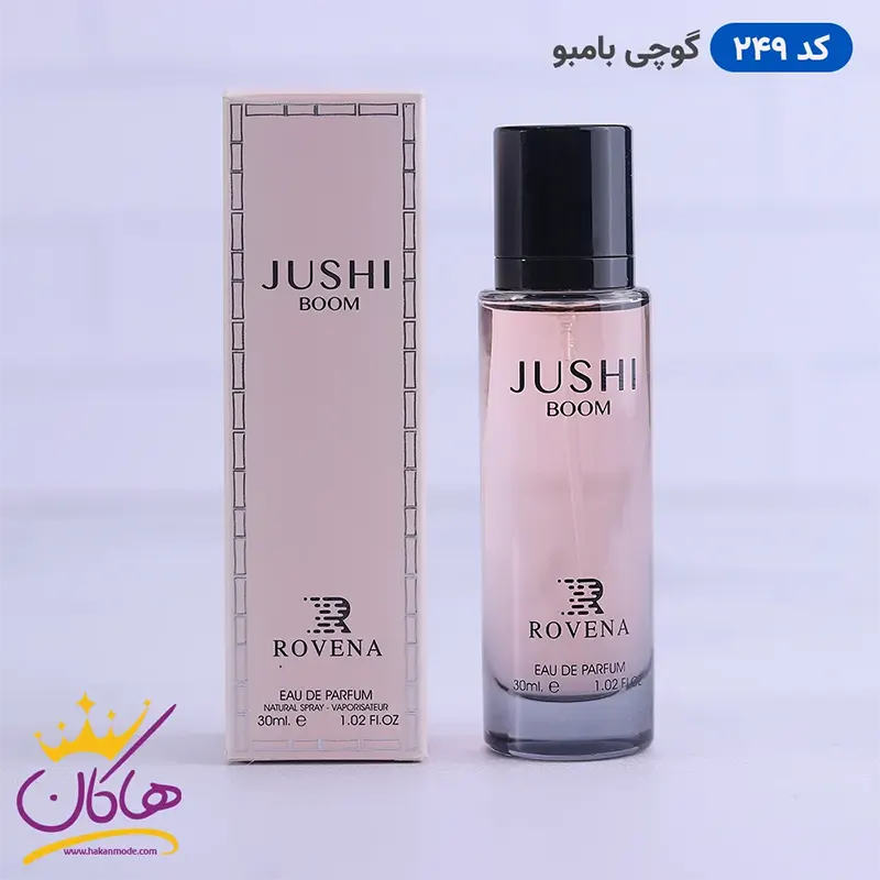 ادکلن روونا جوشی بوم کد ۲۴۹ مشابه با ادکلن اورجینال Gucci Bamboo از برند Gucci است. از نظر نزدیکی به رایحه تا حدود 70 الی 80 درصد به ادکلن اصلی نزدیک است و در مواردی حتی بیش از همتای اورجینال خود محبوبیت پیدا کرده است. اگر بخواهید قیمت هر دو ادکلن را مقایسه کنید، خواهید دید که ادکلن شرکتی به نسبت قیمت بسیار منصفانه، کیفیت مطلوبی دارد. ادکلن اصل دارای سه نت ابتدایی، میانی و پایه است که پیچیدگی خاصی ایجاد میکند، به طوری که وقتی عطر را استشمام میکنید بعد از کمی تمرکز گروههای بویایی آن را تشخیص میدهید اما در ادکلن روونا جوشی بوم خط بو، روشن و سر راست و بیشتر شامل نت پایه میشود. ادکلن روونا ۳۰ میل (Rovena) یکی از باکیفیت ترین عطرهای مینی سایز می باشد که رایحه اکثر برندهای مشهور جهان رو با کیفیت بسیار بالا و با قیمت مناسب تولید کرده است. این عطرهای با غلظت eau de perfume (ادوپرفیوم) طراحی شده اند. شباهت رایحه های تولید شده توسط این برند باورنکردنی بوده و از ماندگاری و پخش بوی بسیار عالی برخوردار هستند. سایز ۳۰ میل ادکلن روونا نگهداری و جابجایی آن را بسیار راحت کرده و به راحتی می توانید در هر مکانی از آن استفاده کنید. ادکلن روونا جوشی بوم کد ۲۴۹ دقیقا رایحه ادکلن معروف گوچی بامبو بوده و از ماندگاری و پخش بوی مناسبی برخوردار است.
