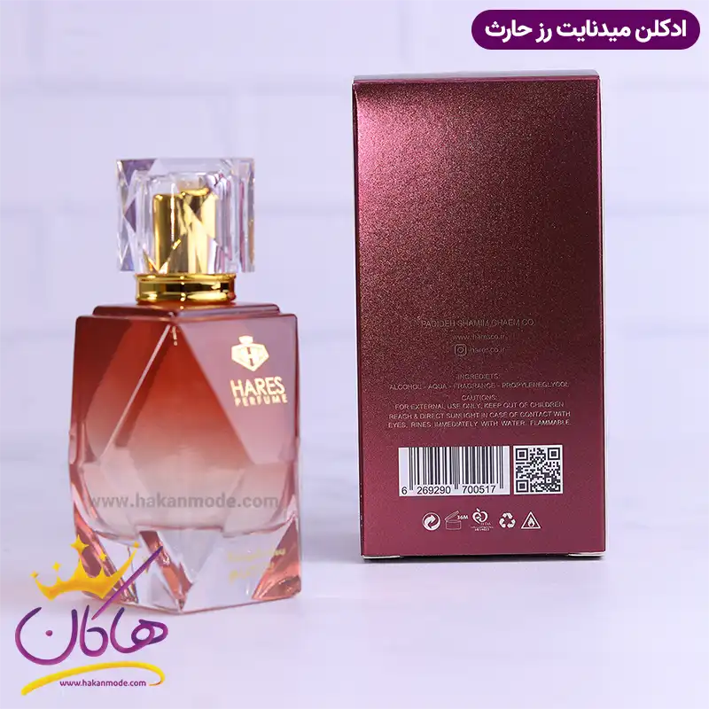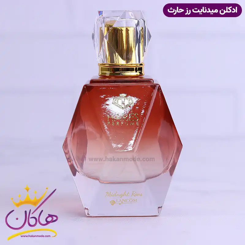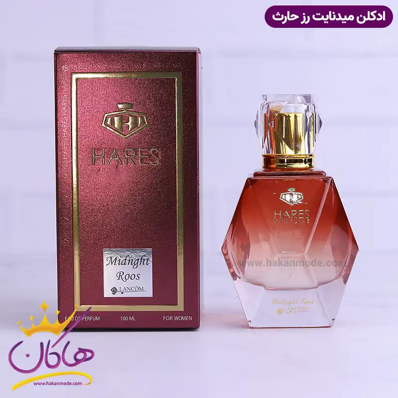 ادکلن میدنات رووز حارث مشابه با Trésor Midnight Rose Lancôme از برند lancome است. از نظر نزدیکی به رایحه تا حدود 70 الی 80 درصد به ادکلن اصلی نزدیک است و در مواردی حتی بیش از همتای اورجینال خود محبوبیت پیدا کرده است. اگر بخواهید قیمت هر دو ادکلن را مقایسه کنید، خواهید دید که ادکلن شرکتی به نسبت قیمت بسیار منصفانه، کیفیت مطلوبی دارد. ادکلن اصل دارای سه نت ابتدایی، میانی و پایه است که پیچیدگی خاصی ایجاد میکند، به طوری که وقتی عطر را استشمام میکنید بعد از کمی تمرکز گروههای بویایی آن را تشخیص میدهید اما در ادکلن لانکوم ترزور میدنایت رز حارث 100 میل است میل خط بو، روشن و سر راست و بیشتر شامل نت پایه میشود. این عطرها با غلظت eau de perfume (ادوپرفیوم) طراحی شده اند. شباهت رایحه های تولید شده توسط این برند باورنکردنی بوده و از ماندگاری و پخش بوی بسیار عالی برخوردار هستند. رایحه ادکلن Hares Midnght roos lancom مشابه عطر لانکوم ترزور میدنایت رز است، پس همان حس نشاط و لطافت را ایجاد میکند.