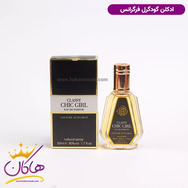 ادکلن زنانه شیک گرل فراگرنس ورد مشابه با Good Girl Carolina Herrera از برند Carolina Herrera است. از نظر نزدیکی به رایحه تا حدود 70 الی 80 درصد به ادکلن اصلی نزدیک است و در مواردی حتی بیش از همتای اورجینال خود محبوبیت پیدا کرده است. اگر بخواهید قیمت هر دو ادکلن را مقایسه کنید، خواهید دید که قیمت ادکلن شرکتی، به نسبت کیفیت آن بسیار مناسب است. ادکلن اصل دارای سه نت ابتدایی، میانی و پایه است که پیچیدگی خاصی ایجاد می‌کند، به طوری که وقتی عطر را استشمام می‌کنید بعد از کمی تمرکز گروههای بویایی آن را تشخیص می‌دهید اما در ادکلن گودگرل مشکی فرگرانس 50 میل خط بو، روشن و سر راست و بیشتر شامل نت پایه می‌شود. ادکلن Fragrance world Chic girl مشابه ادکلن گود گرل کارولینا هررا است پس به همان اندازه حس شکست ناپذیری را منتقل می کند.