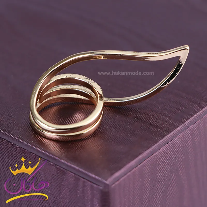 خرید انگشتر استیل زنانه مینیمال برگ طلایی با بهترین قیمت