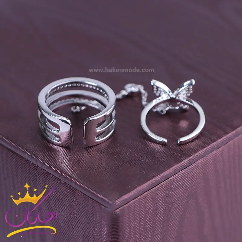 خرید انگشتر و بند انگشتی ست با زنجیر اتصال پروانه ای با بهترین قیمت