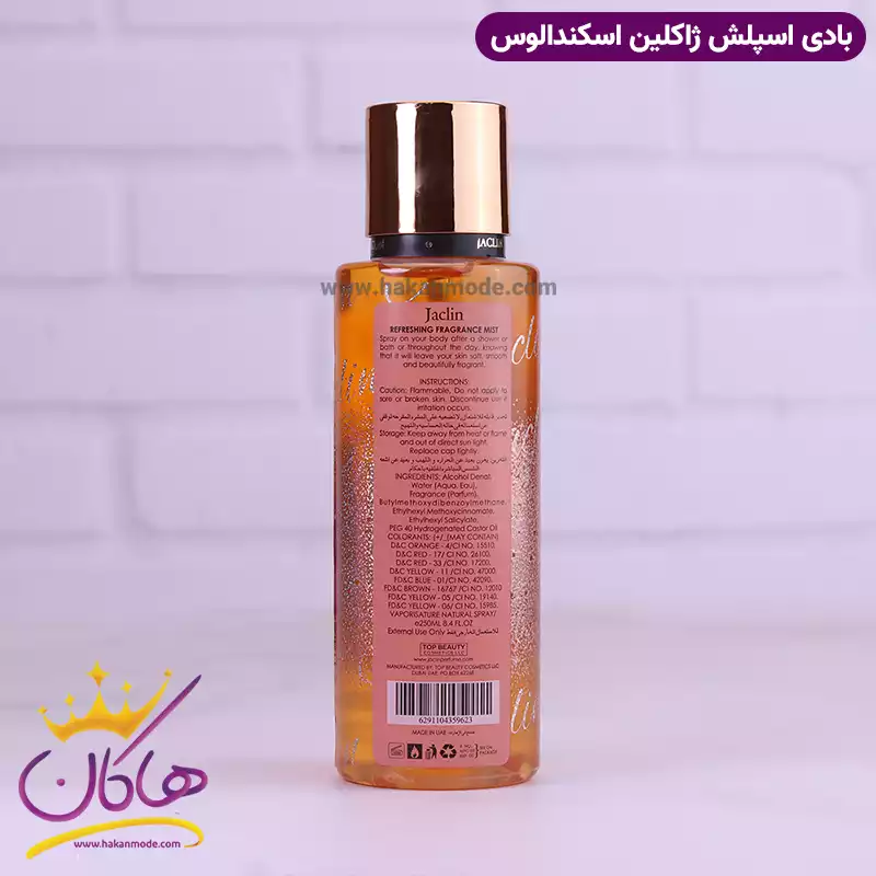 رایحه بادی اسپلش اسکندالوس گرم و شیرین است. اغلب زنان مهربان و خوش‌صحبت از این رایحه استقبال می‌کنند. بادی اسپلش‌ها معمولا برای تمام فصول به کار می‌روند. بادی اسپلش scandalous fragrance mist jaclin بطری نارنجی رنگ و شاین دار خوش‌دستی دارد که نام بادی اسپلش روی آن دیده می‌شود. درپوش این بادی اسپلش، طلایی رنگ و ساده است که به زیبایی روی این بادی اسپلش قرار گرفته است. روی این درپوش نام برند ژاکلین نوشته شده است.
