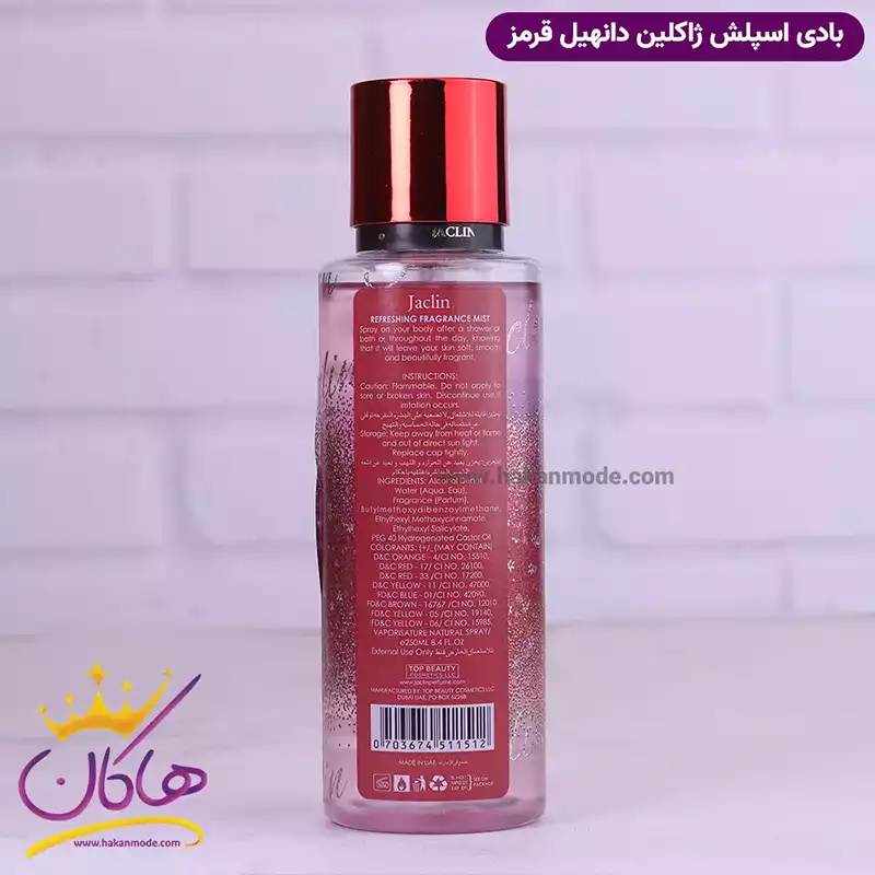رایحه بادی اسپلش دانهیل قرمز گرم و شیرین است. اغلب مردان مهربان و خوشصحبت از این رایحه استقبال میکنند. بادی اسپلشها معمولا برای تمام فصول به کار میروند. بادی اسپلش danbill desire fragrance mist jaclin بطری قرمز رنگ و شاین دار خوشدستی دارد که نام بادی اسپلش روی آن دیده میشود. درپوش این بادی اسپلش، قرمز رنگ و ساده است که به زیبایی روی این بادی اسپلش قرار گرفته است. روی این درپوش نام برند ژاکلین نوشته شده است.