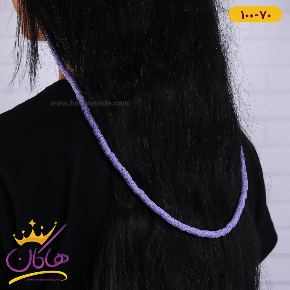 بند عینک سیلیکونی یکی از شیکترین و سبکترین مدلهای بند عینک است که به راحتی به دستهی عینک وصل شده و از عینک شما محافظت میکند. طول این بند 75 سانتیمتر و عرض آن 6 میلیمتر است. جنس این بند سیلیکونی(پلاستیک با کیفیت و منعطف) بوده، و از پیکسلهای بنفش رنگ تشکیل شده است، که بصورت فشرده پشت سرهم ردیف شدهاند. در قسمت اتصال بند به عینک یک گیره لاستیکی وجود دارد که به دسته عینک وصل میشود. رنگ ملایم و زیبای این کار به شما احساس آرامش را القا میکند. این بند عینک قابل شستشو میباشد