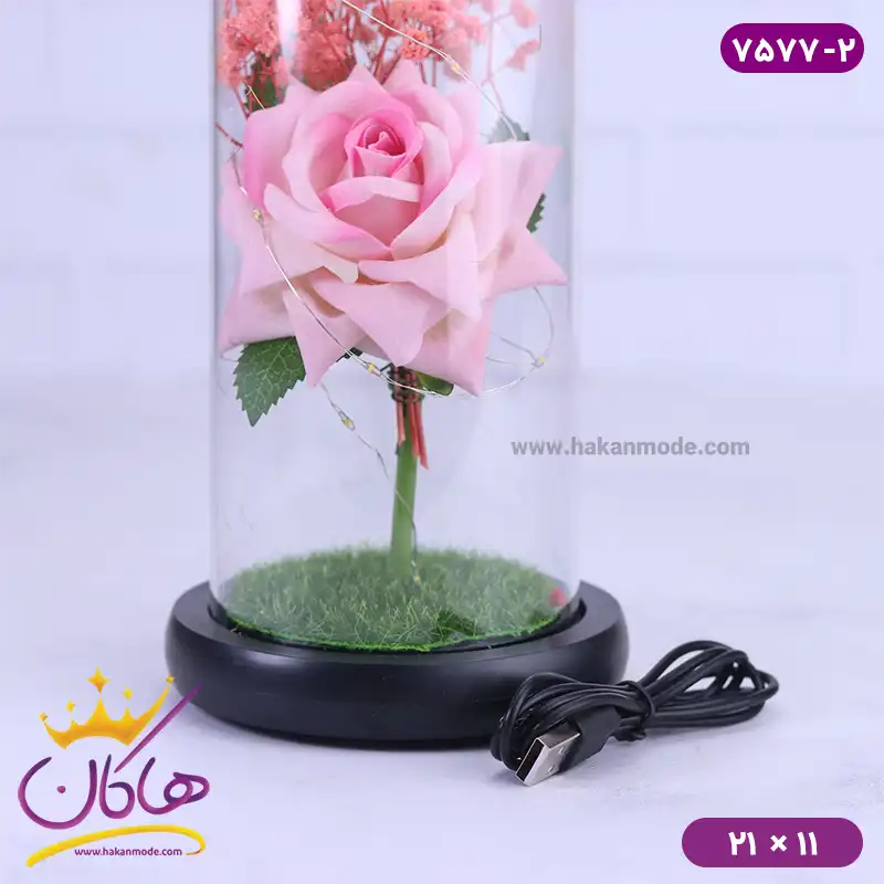خرید و قیمت حباب شیشه ای چراغ دار رز و گل عروس همراه با کابل