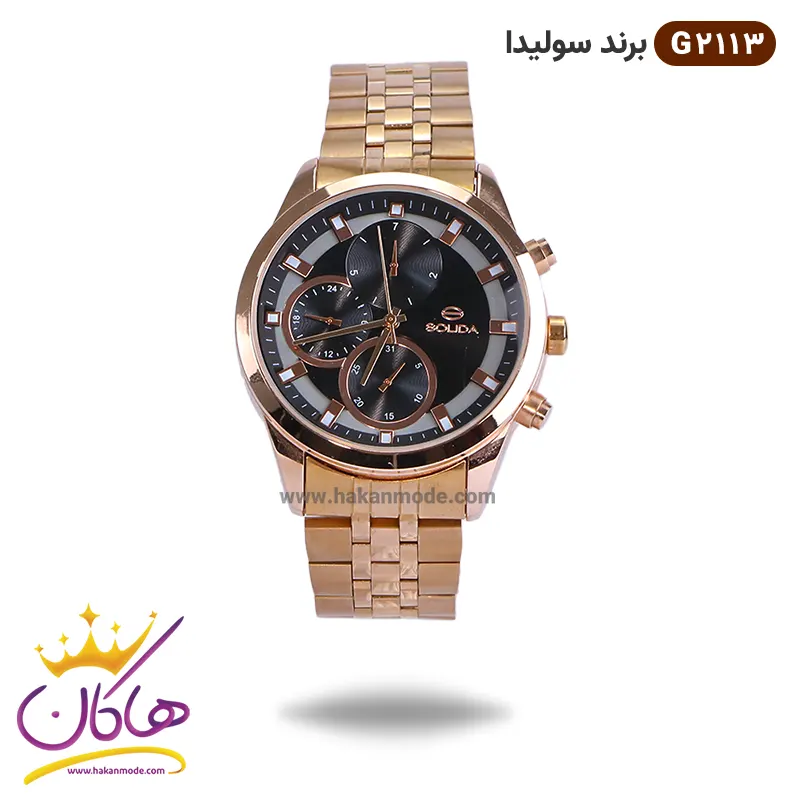 خرید ساعت سولیدا مردانه رزگلد صفحه مشکی کد G 2113