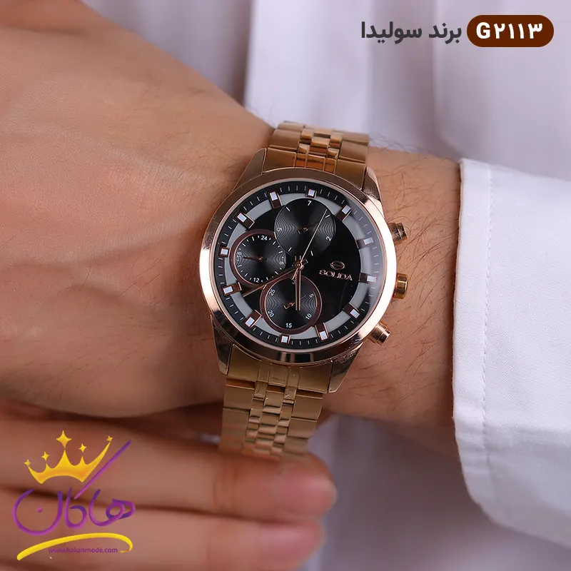 با خرید ساعت سولیدا رزگلد در هر لحظه و به‌راحتی در محل کار یا موقع رانندگی و یا پیاده‌روی از زمان آگاه شوید و کارهای خود را تنظیم کنید. ساعت مچی علاوه بر بحث زمان یک اکسسوری جذاب برای همه و به ویژه برای آقایان است. با ساعت سولیدا استایل شما جذابتر می‌شود. خرید ساعت مچی و بستن ساعت هنوز طرفداران پر و پا قرصی دارد و در بین شیک‌پوشان محبوب است.