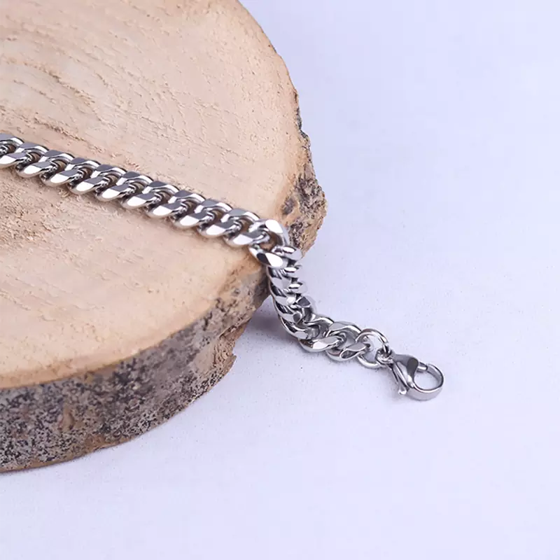 دستبند استنلس استیل نقره ای از نمای نزدیک