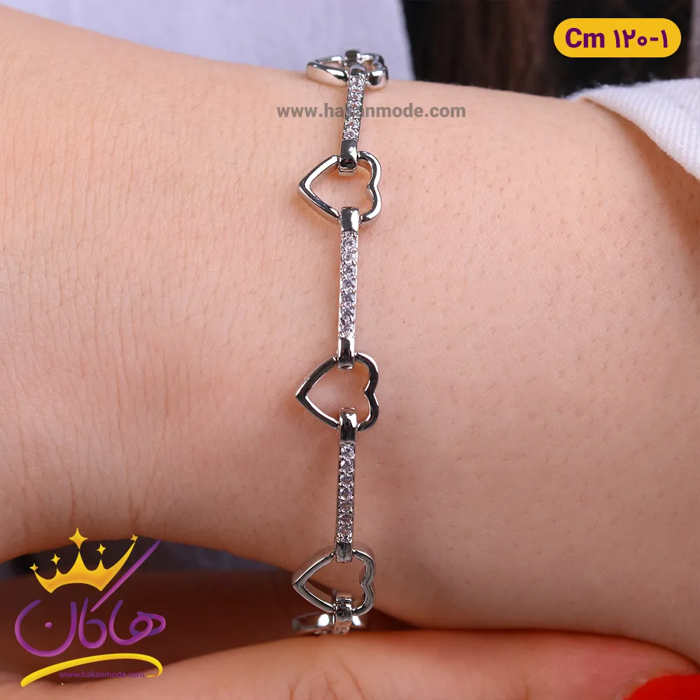 دستبند استیل زنانه نگیندار طرح قلب توخالی با پهنای 6 میلیمتر و طول 18 سانتیمتر یکی از شیکترین مدلهای دستبند است. این دستبند نقرهای زیبا از یک ردیف نگین اتمی سفید رنگ درست شده که با فاصلههای حدودا 3 سانتی قلبهای توخالی ساده روی آن قرار گرفته است . این دستبند هم بر دستهای ظریف به خوبی مینشیند و هم روی دست تپل زیبایی خاص خود را دارد.