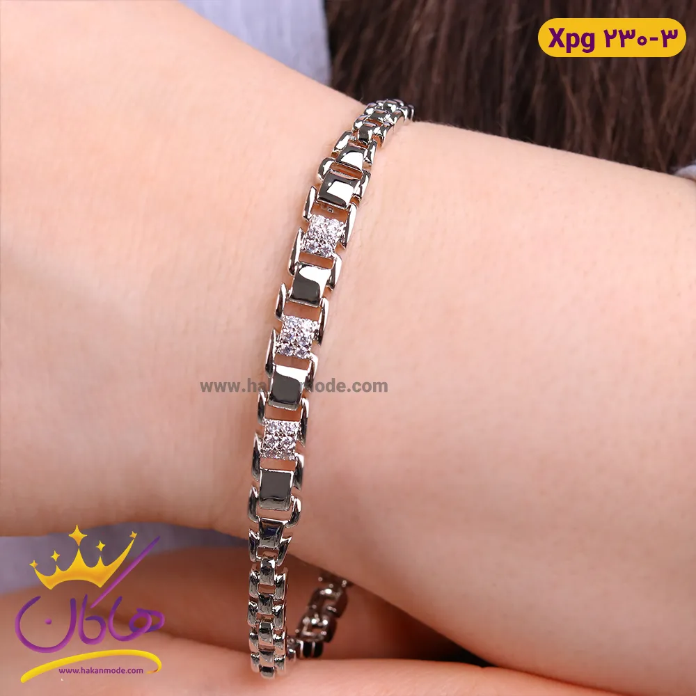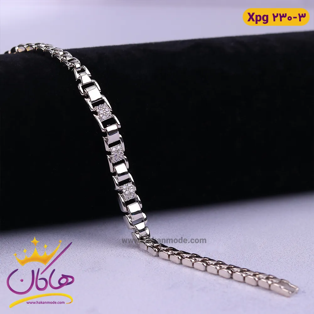دستبند استیل زنانه طرح مربعی ساده و نگین دار | کد xpg230/3