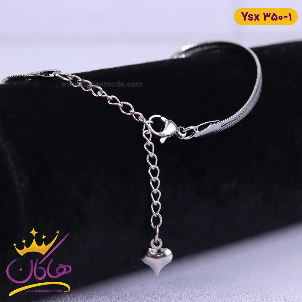 دستبند استیل زنانه هرینگبون نقره‌ای با پهنای 4 میلی‌متر و طول 18 سانتی‌متر، یکی از شیک‌ترین مدل‌های دستبند است. این دستبند از یک زنجیر طرح ماری ساده ساخته شده که به مدل هرینگبون نیز معروف است. در یکی از قسمت‌های انتهای دستبند، یک زنجیر ظریف‌ برای تنظیم طول بند وجود دارد. طول این زنجیر 5 سانتی‌متر بوده و یک قلب توپر فلزی کوچک به انتهای آن متصل است، که بعد از بستن دستبند به حالت آویز از قفل قرار می‌گیرد. این دستبند هم بر دست‌های ظریف به خوبی می‌نشیند و هم روی دست تپل زیبایی خاص خود را دارد.