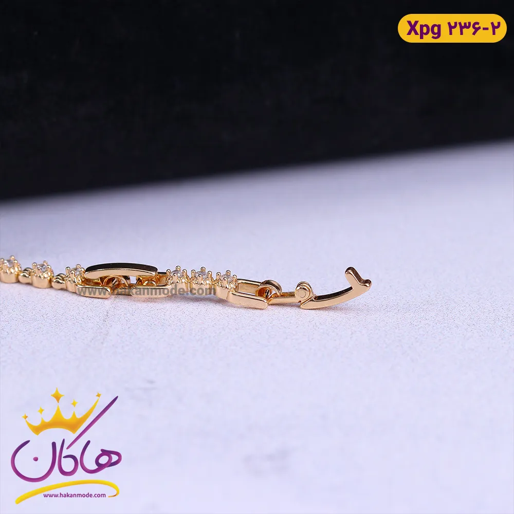 دستبند استیل زنانه نگین دار طلایی | کد xpg236/2