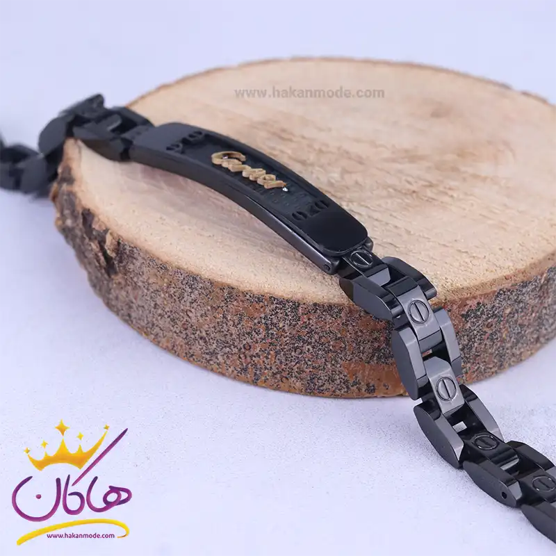 خرید دستبند مردانه فلزی مشکی پلاک کارتیر؛ ضدحساسیت و رنگ ثابت