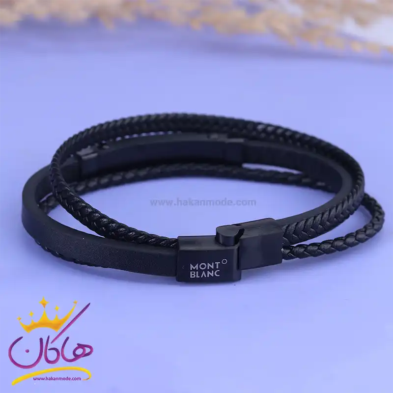 قیمت دستبند چرم مردانه 3 لاین مونت بلانک مشکی و خرید عمده دستبند