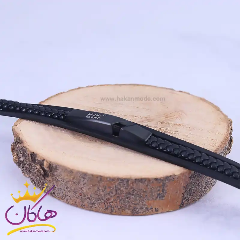 قیمت دستبند چرم مشکی 3 لاین پلاک مونت بلانک و خرید عمده دستبند