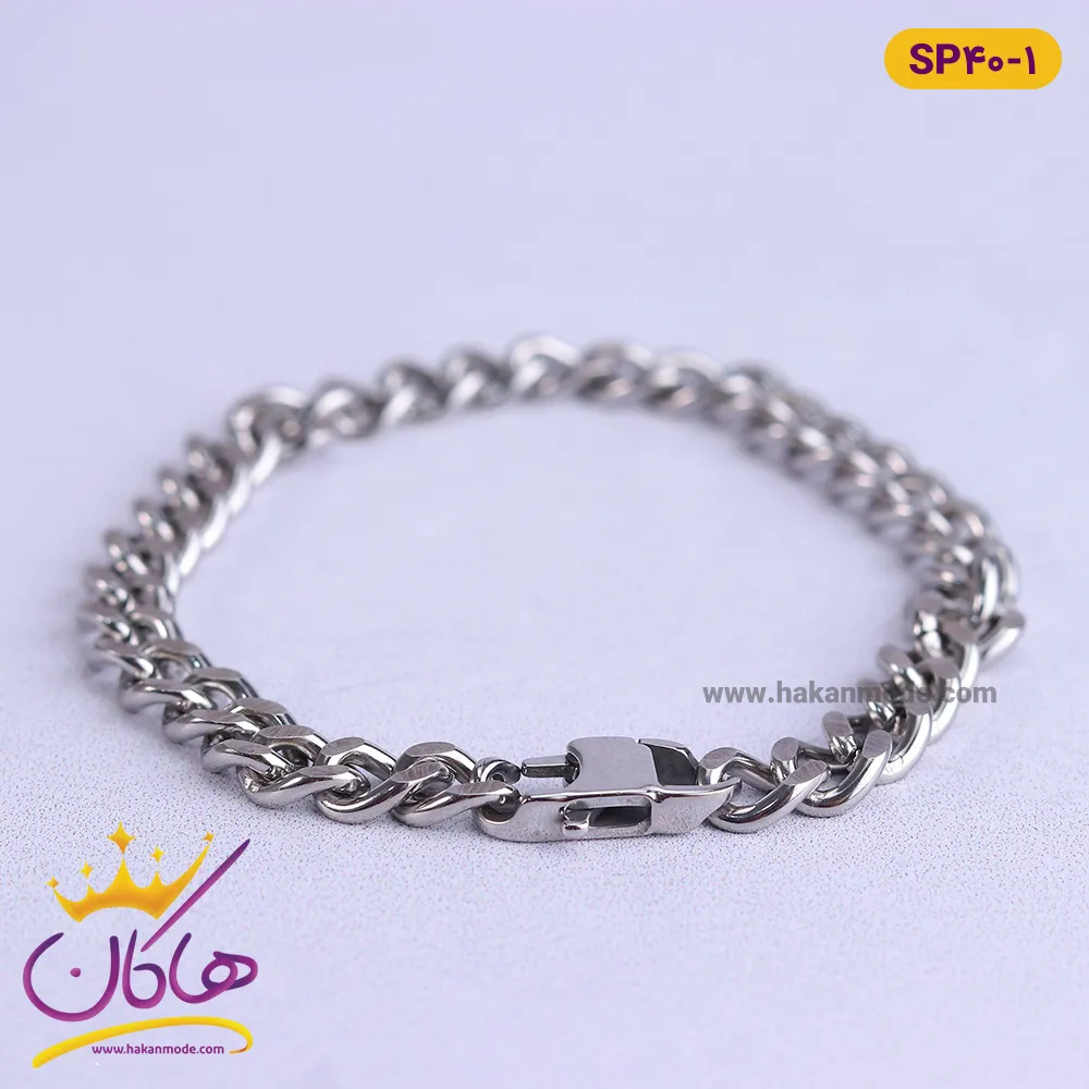 “name”: “دستبند کارتیر مردانه استنلس استیل نقره ای | stainless steel sp 40/1”,