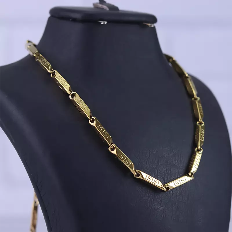زنجیر استیل مردانه کبریتی طلایی طرح ورساچه 4001