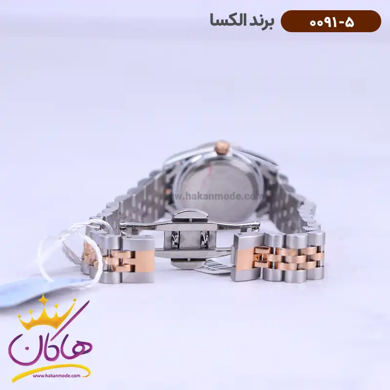 قفل ساعت الکسا زنانه فلزی نقره ای رزگلد 0091/5