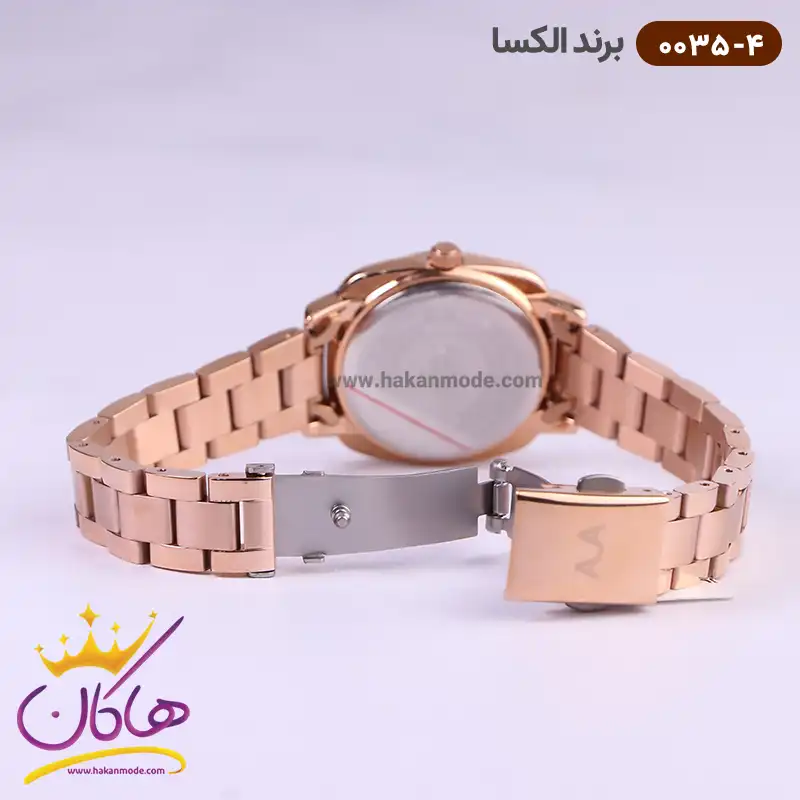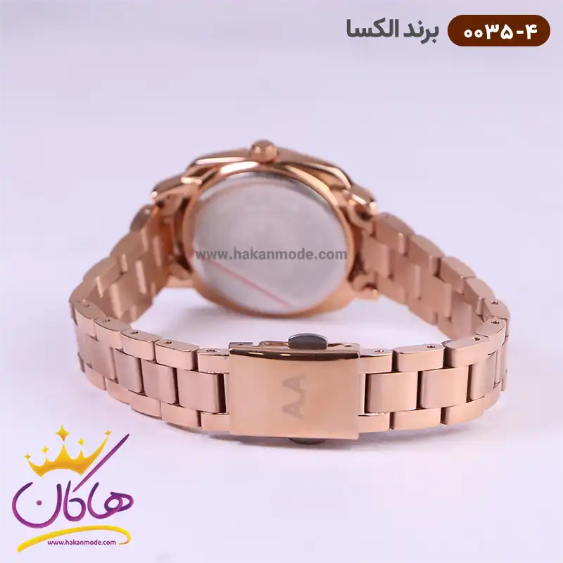 ساعت الکسا زنانه فلزی رزگلد نگین دار کد 0035/4 نمای نزدیک