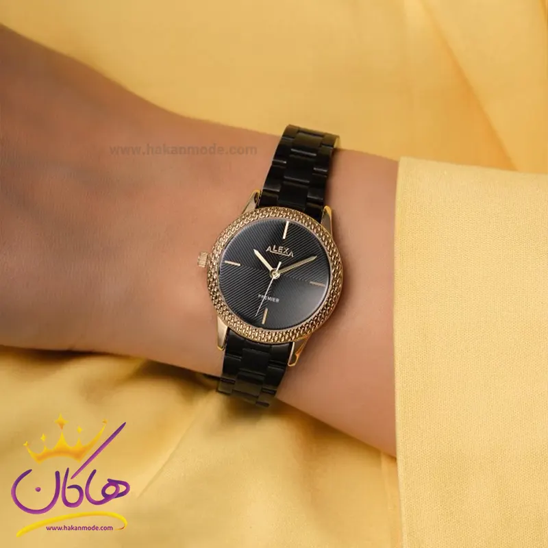 ساعت الکسا زنانه فلزی مشکی طلایی کد 0046/1