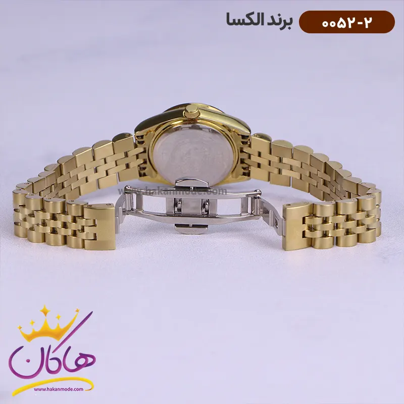 ساعت الکسا زنانه فلزی طلایی نگین دار کد 0052/2 نمای قفل