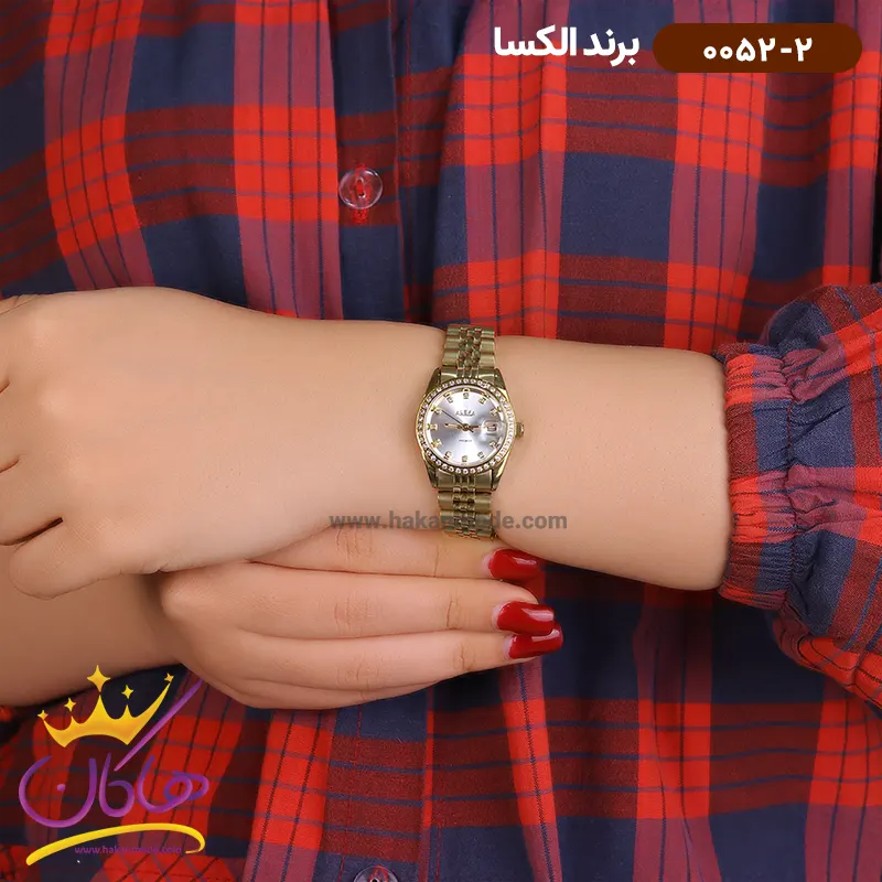 ساعت الکسا زنانه فلزی طلایی نگین دار کد 0052/2