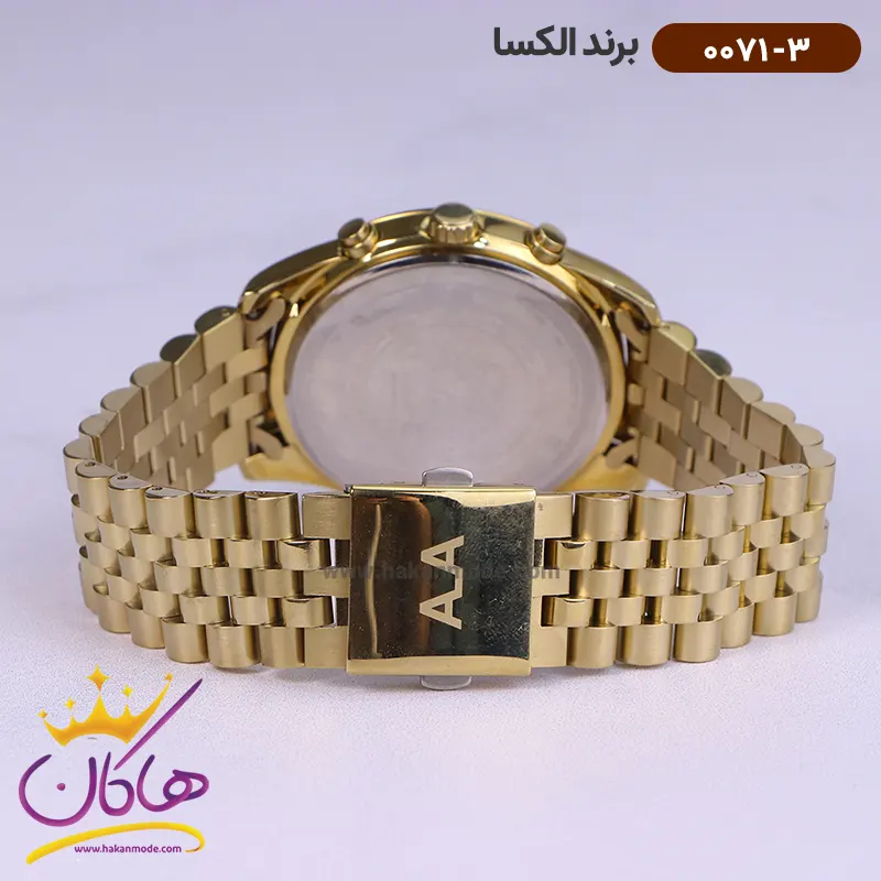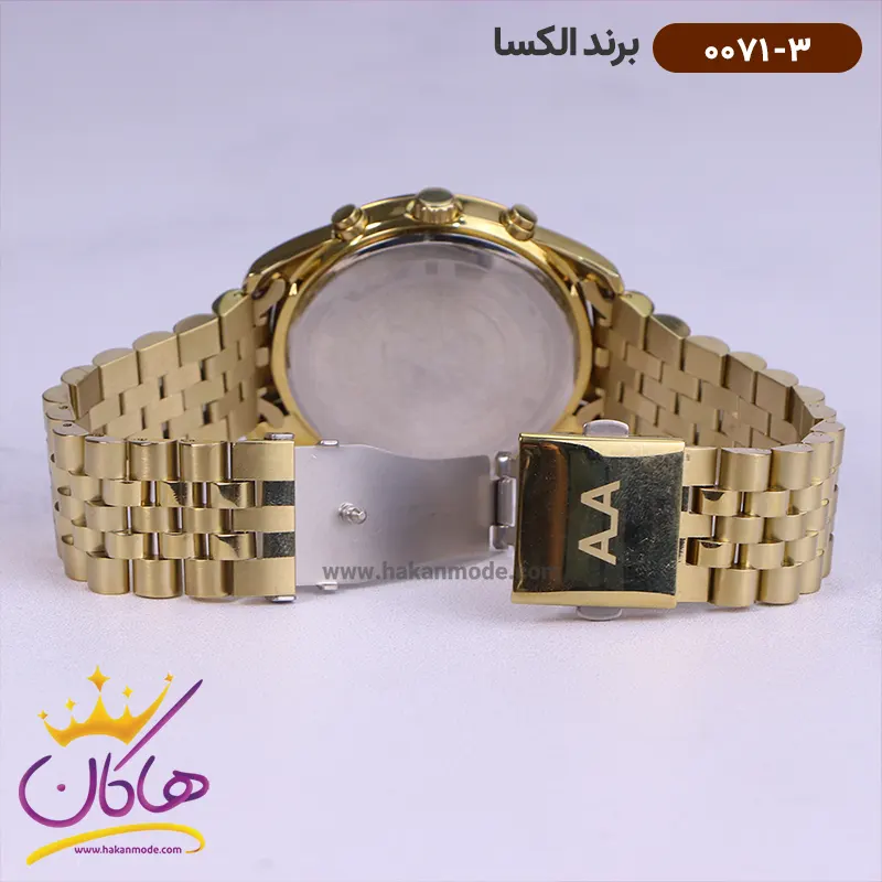 ساعت الکسا مردانه فلزی کد طلایی فول دیت 0071/3 نمای قفل