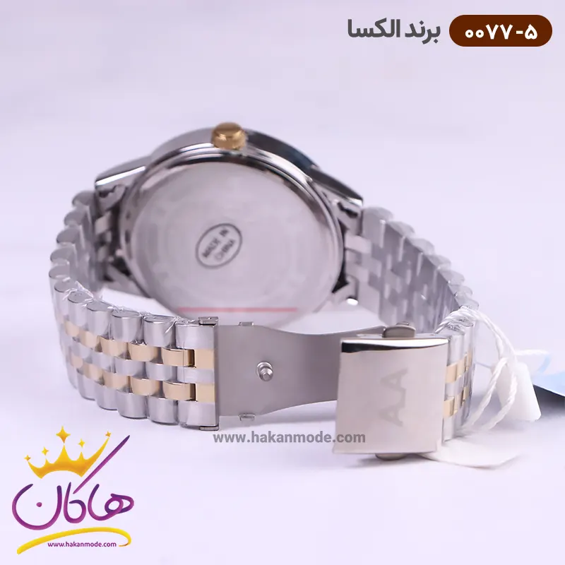 ساعت الکسا مردانه فلزی قاب طلایی کد 0077/5 نمای نزدیک