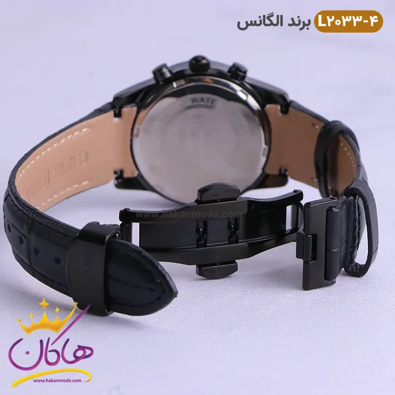 ساعت الگانس زنانه بند چرمی مدل L2033 مشکی ظاهری کلاسیک و جذاب دارد. قاب استیل مشکی آن، رنگ ثابت و ضدحساسیت است. موتور این ساعت، BC ژاپن و از نوع کوارتز است. ساعت الگانس بند چرمی مشکی یکسال گارانتی موتور و تا پنج سال گارانتی تعویض باتری دارد. ضد آب بودن در حد 3 ATM یکی دیگر از ویژگی های این ساعت است. ساعت الگانس از نظر قیمت در حد متوسط و از نظر کیفیت از بهترین نمونه های ساعت “های کپی” است.