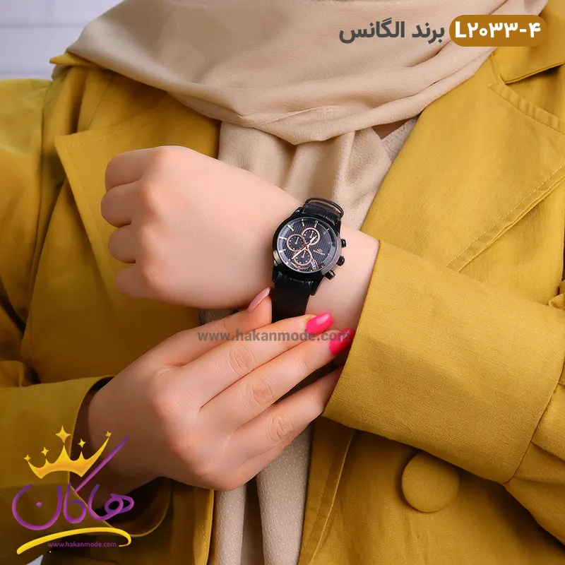 ساعت الگانس زنانه بند چرمی مدل L2033 مشکی روی دست