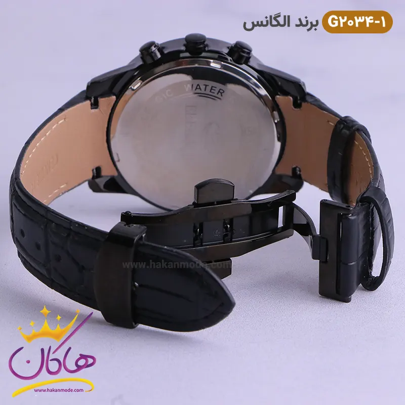 ساعت الگانس مردانه بند چرمی مدل G2034 مشکی نمای قفل