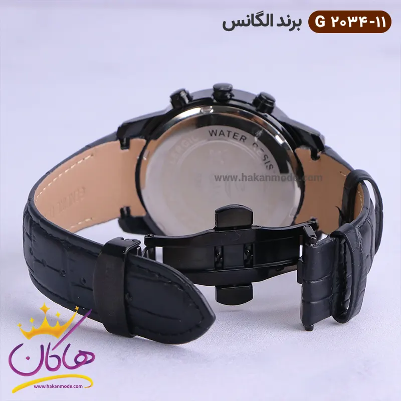 ساعت الگانس مردانه بند چرمی مشکی G2034/11 نمای قفل