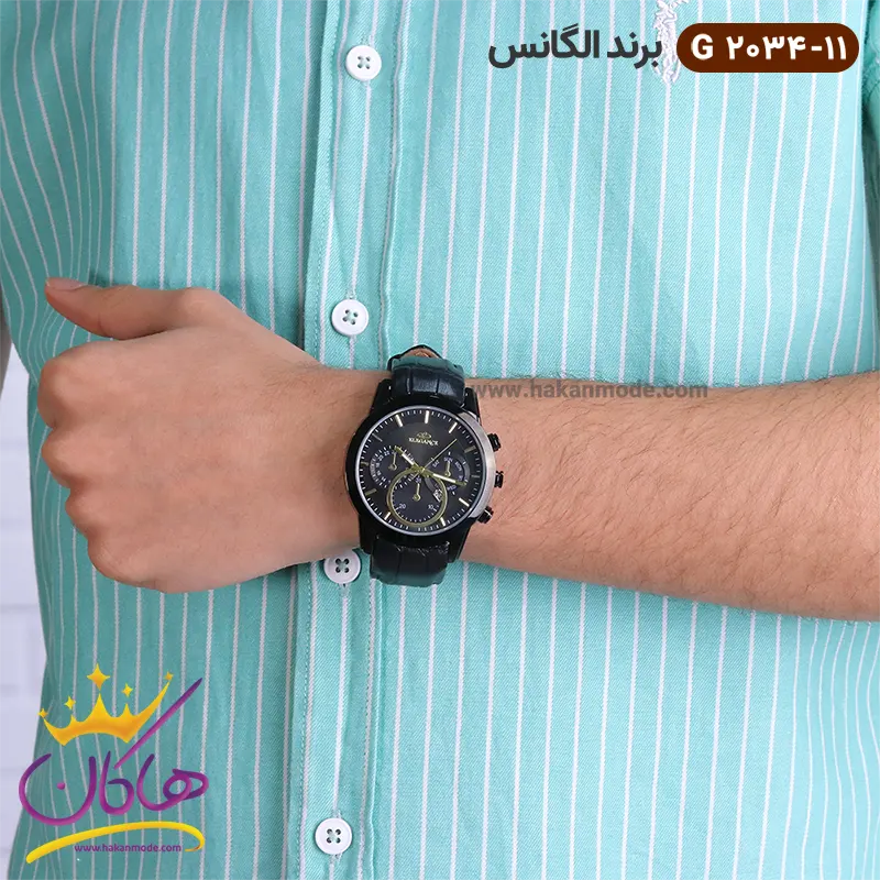 خرید ساعت الگانس مردانه بند چرمی مشکی G2034/11