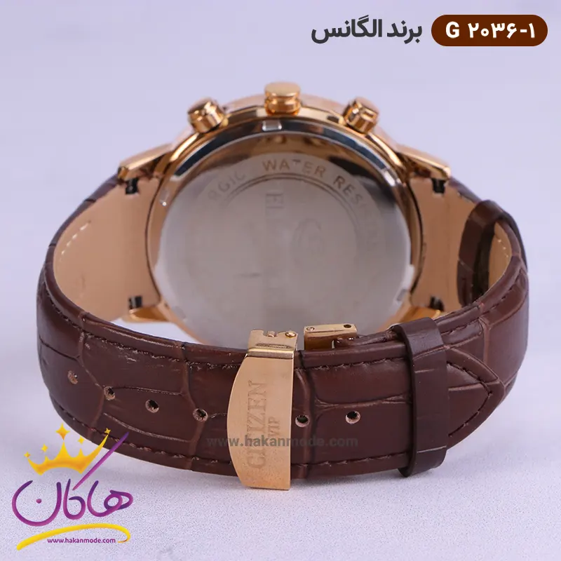 ساعت الگانس مردانه بند چرمی مدل G2034 قهوه ای