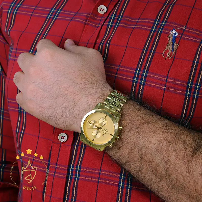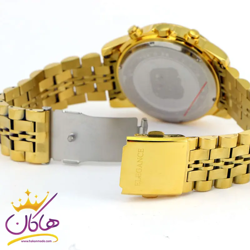 ساعت الگانس مردانه فلزی تمام طلا عقربه ای دارای نمایشگر تقویم.