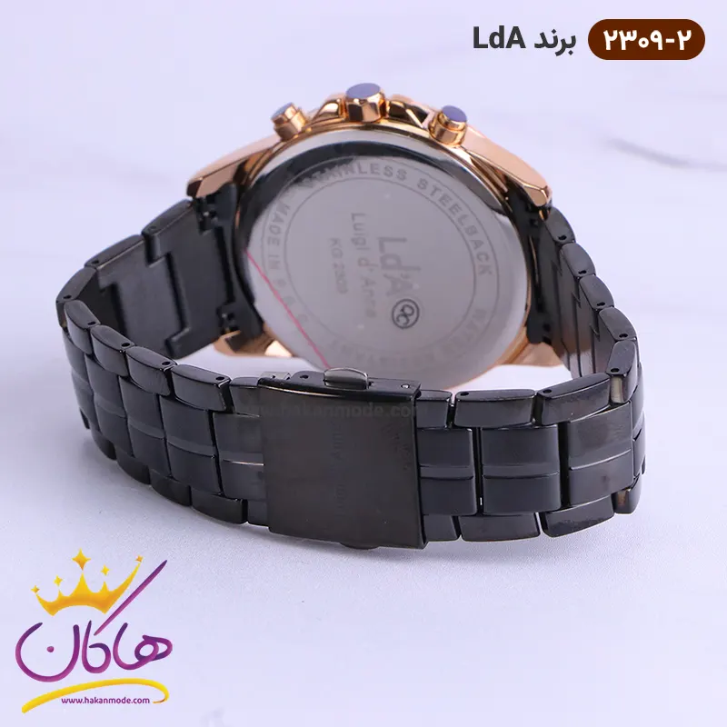 ساعت ال دی ای مشکی قاب رزگلد کد 2309/2 | لویجی د آنا LDA